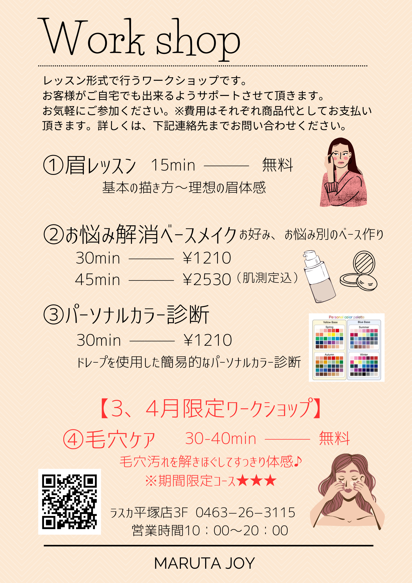 流行メイクのレッスンなども受け付けております。